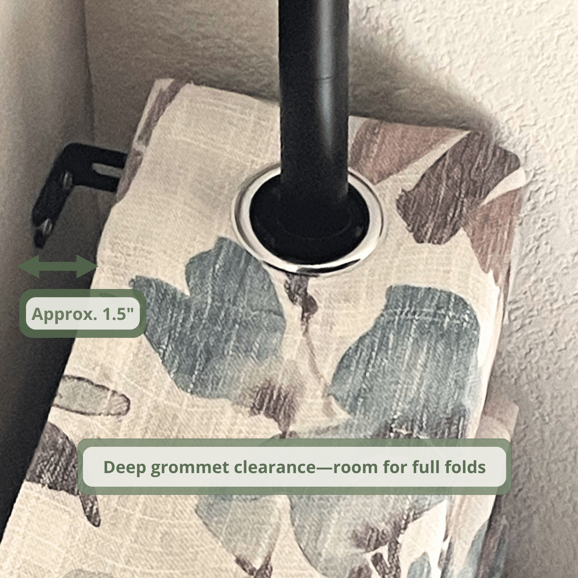 | Curtain-to-wall clearance | Approx. 1.5″ |