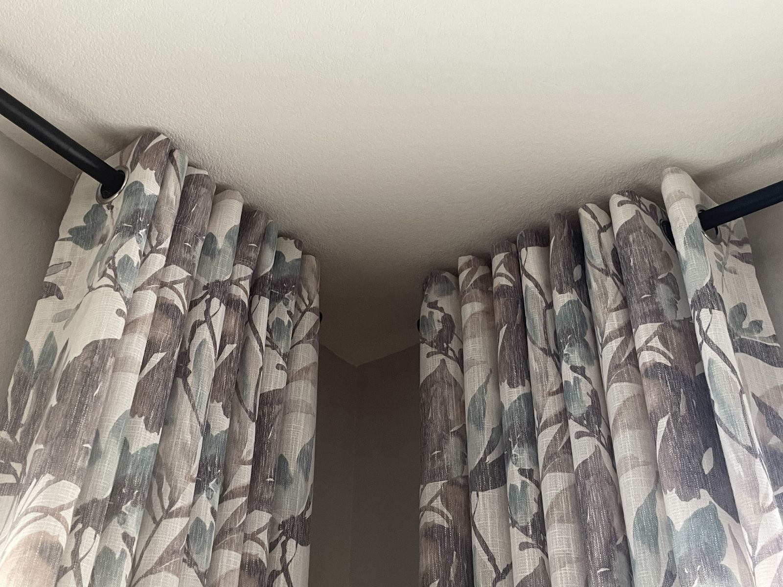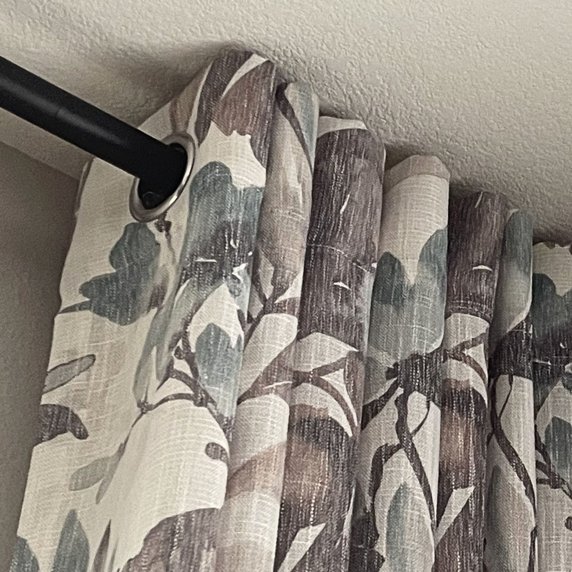 The linen-look fabric filters light softly while preserving privacy, and the deep grommet header glides smoothly so panels stack in graceful, full folds.