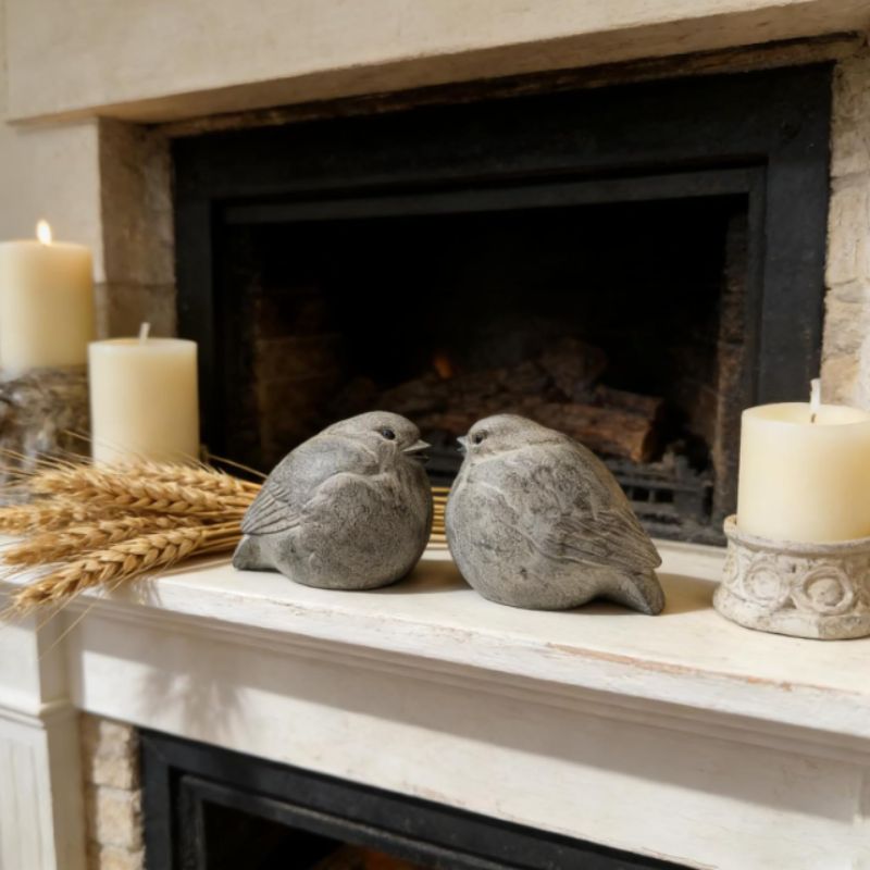 These charming bird figurines bring a soft, peaceful touch to your home décor, making them a lovely accent for shelves, mantels, and tabletop displays. Designed as a matching set, the two birds face one another with gentle expressions, creating a sense of warmth, harmony, and quiet charm that feels right at home in cozy living spaces.