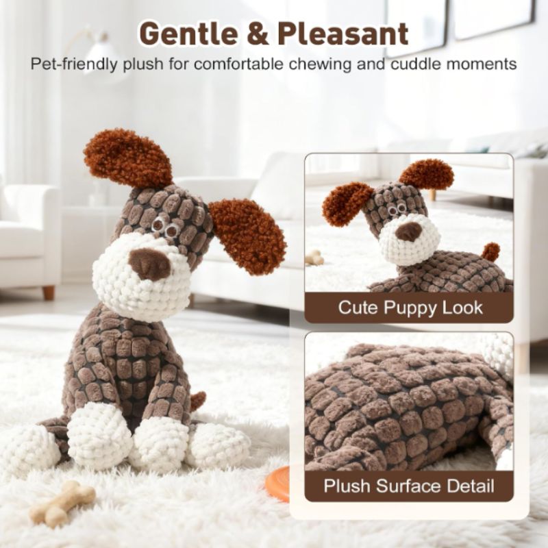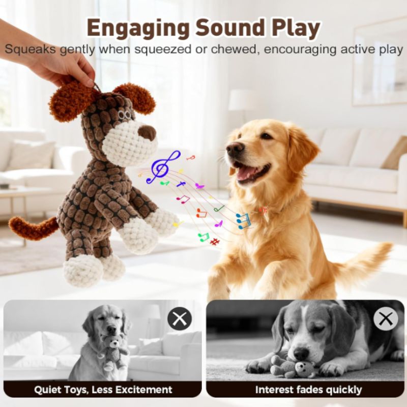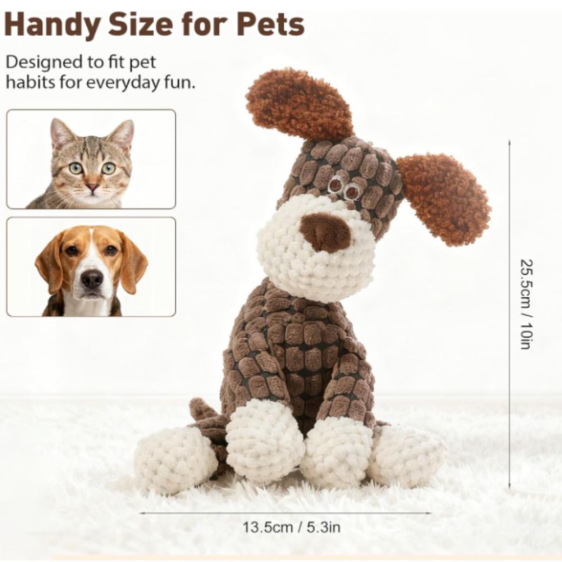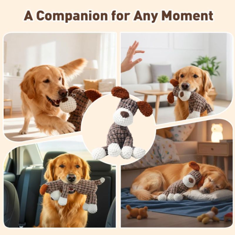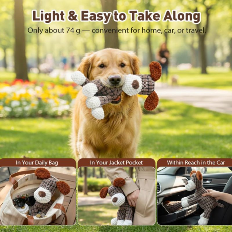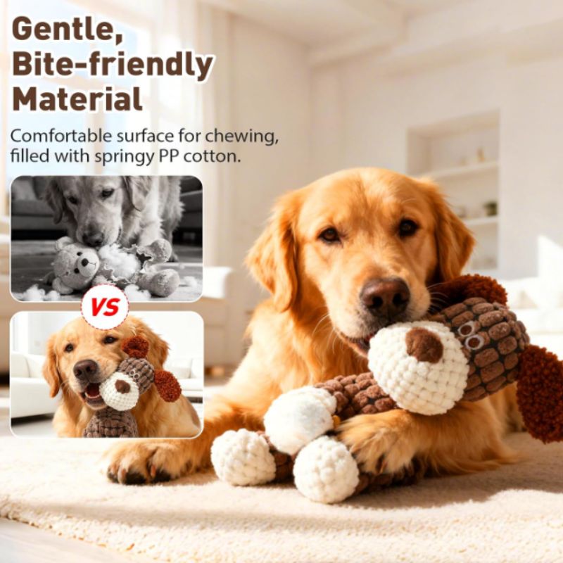 Perfect for puppies, adult dogs, and multi-dog households, this plush squeaky toy balances durability with softness—because playtime should be fun and comforting.