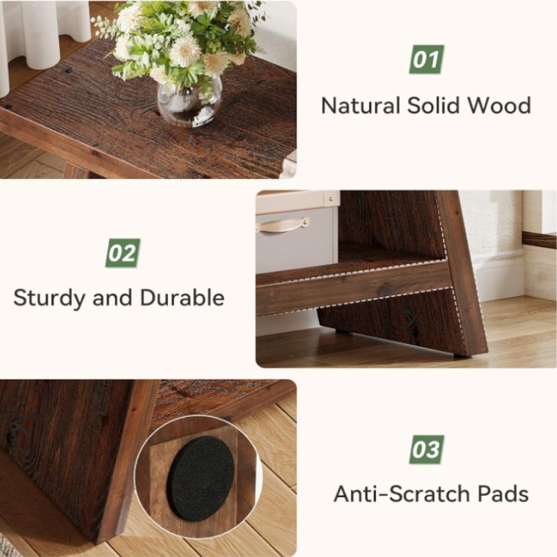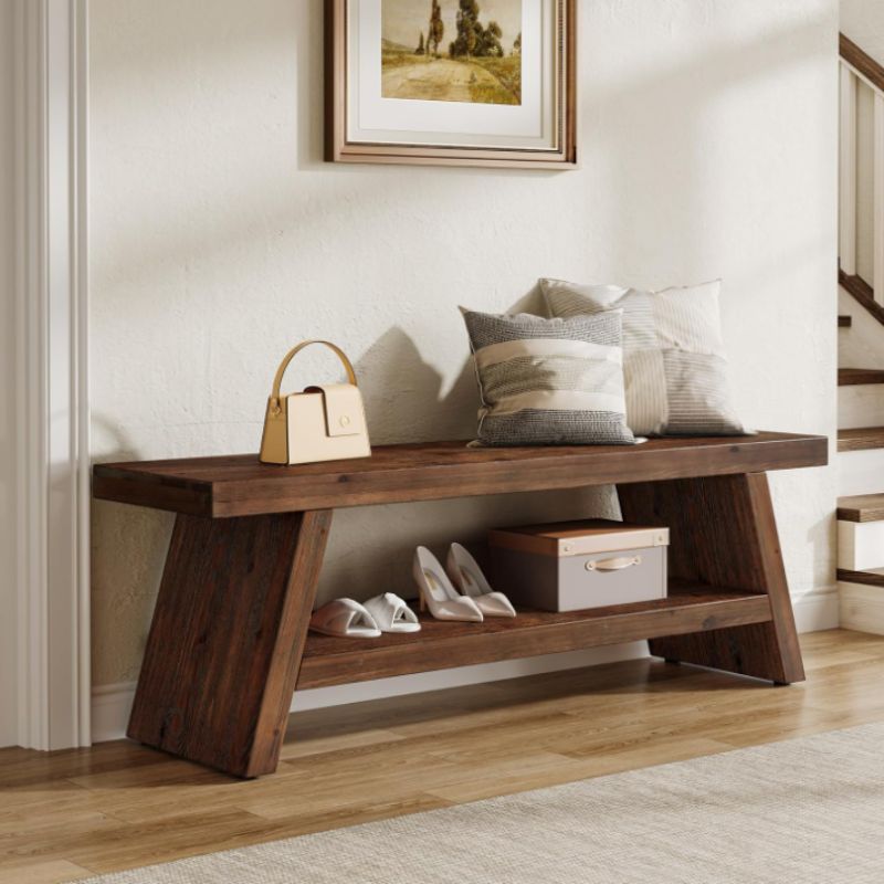 Crafted from durable solid wood with a rich vintage brown finish, this entryway bench is designed to stand up to daily life while adding timeless character to your space.