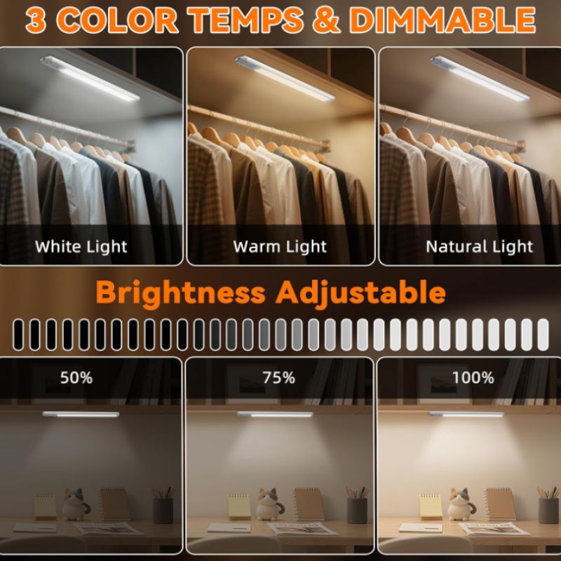 Add thoughtful lighting exactly where you need it with these wireless under-cabinet motion sensor lights. Designed for everyday convenience, this rechargeable 3-pack brings soft, customizable illumination to kitchens, closets, cabinets, hallways, and bedside spaces — without cords or complicated installation.