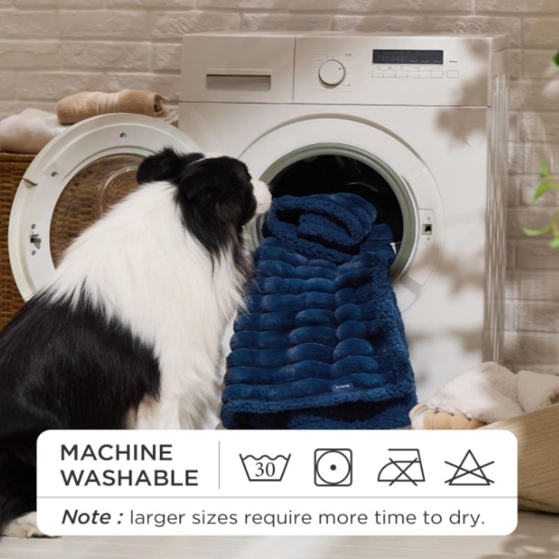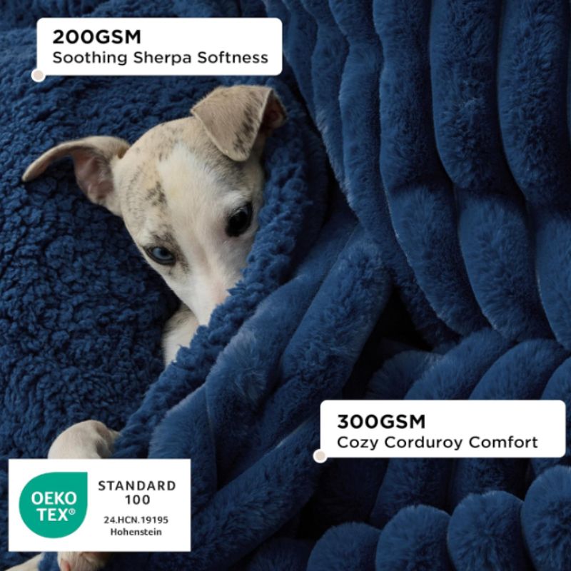 One side features ultra-soft sherpa fleece for warmth and comfort, while the reverse side offers durable corduroy fleece for added structure and style. A hidden waterproof lining helps prevent moisture from seeping through, protecting sofas, beds, dog crates, and car seats.